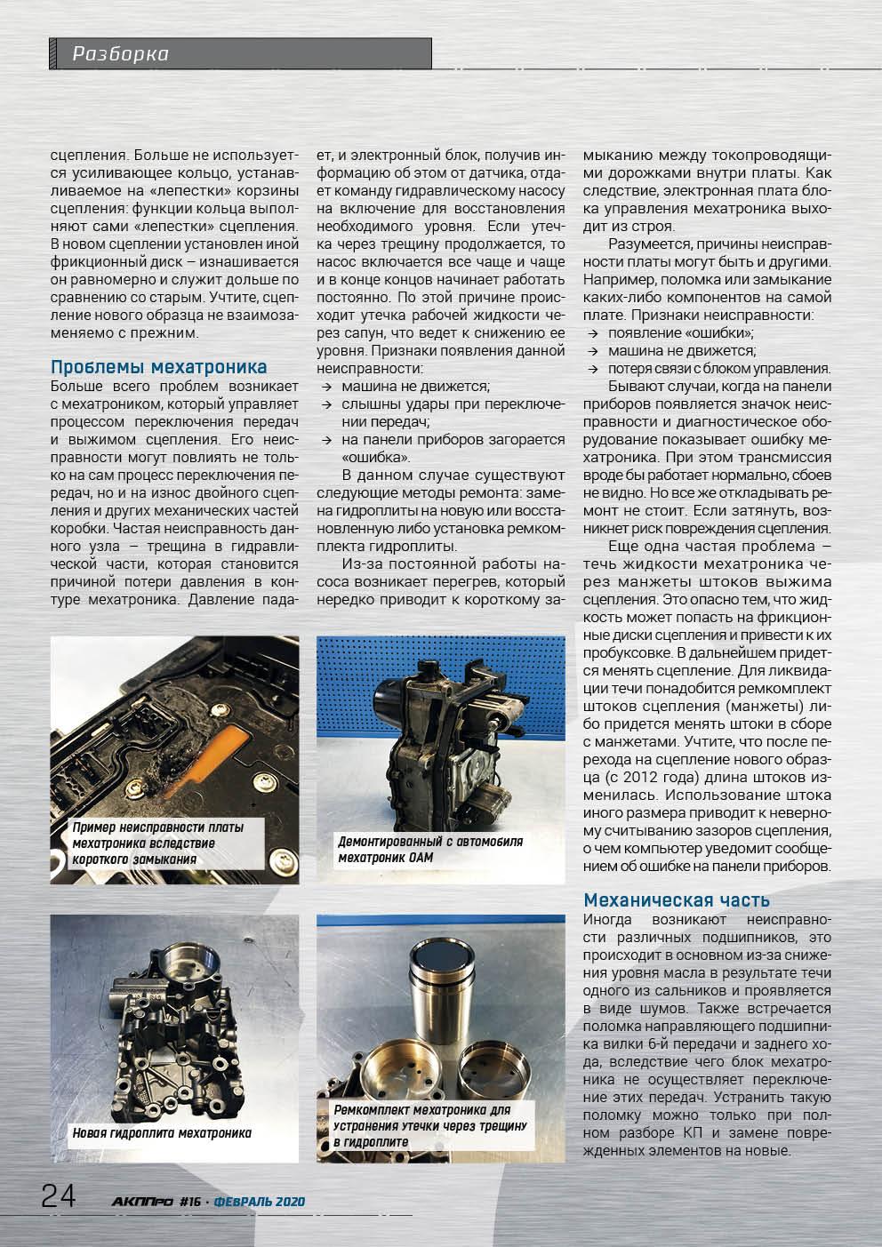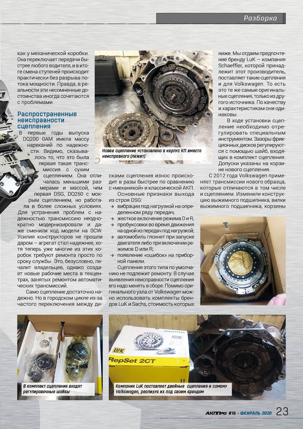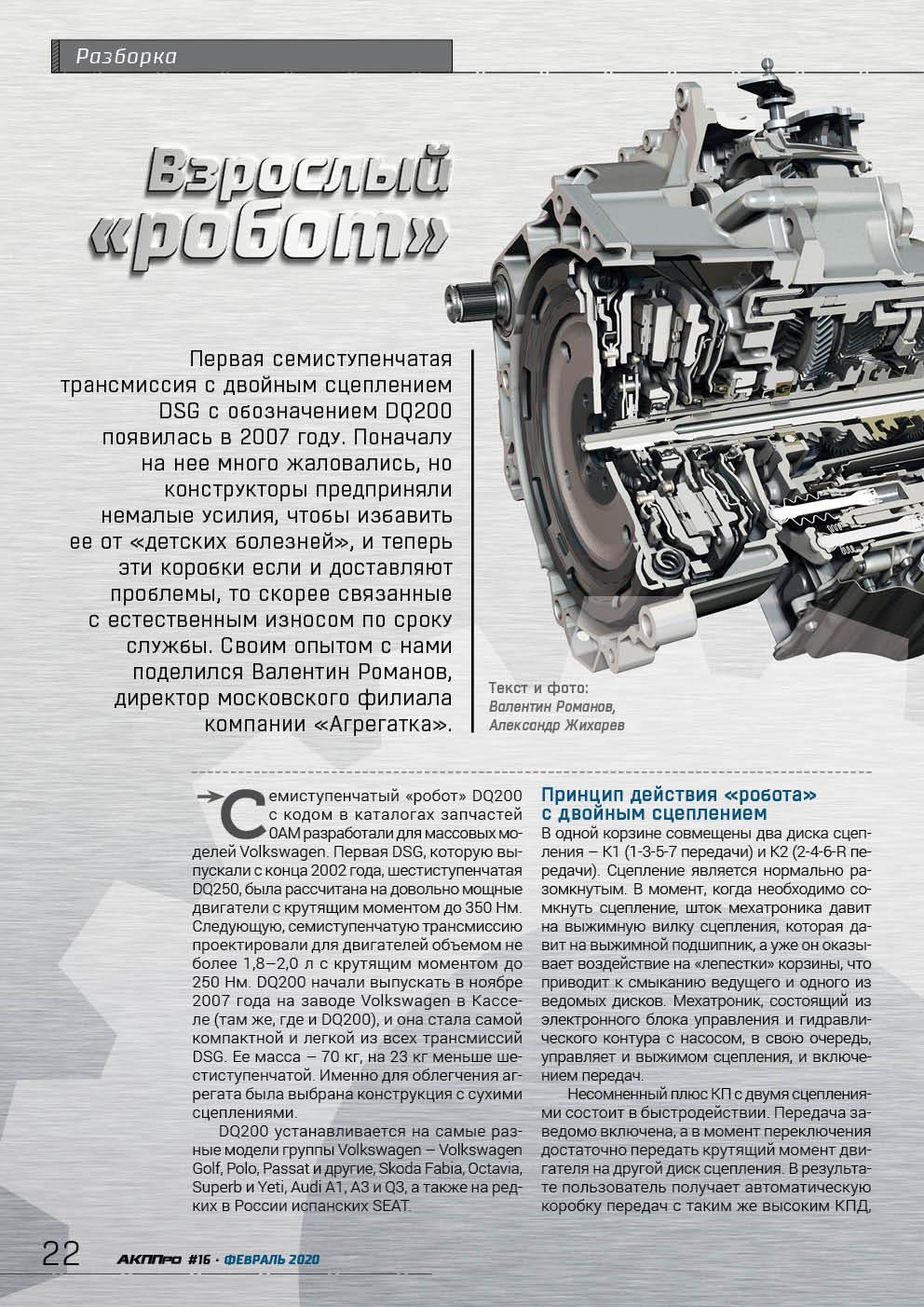 The first seven-speed DSG dual-clutch transmission designated as DQ200 appeared in 2007. At first there were many complaints about this development, but the designers made great efforts to restore it from "childhood diseases", and if now any problems occur with these boxes, they are more likely related to natural wear and tear during the service life. Valentin Romanov, director of the Moscow branch of the Agregatka company, shared his experience with us.