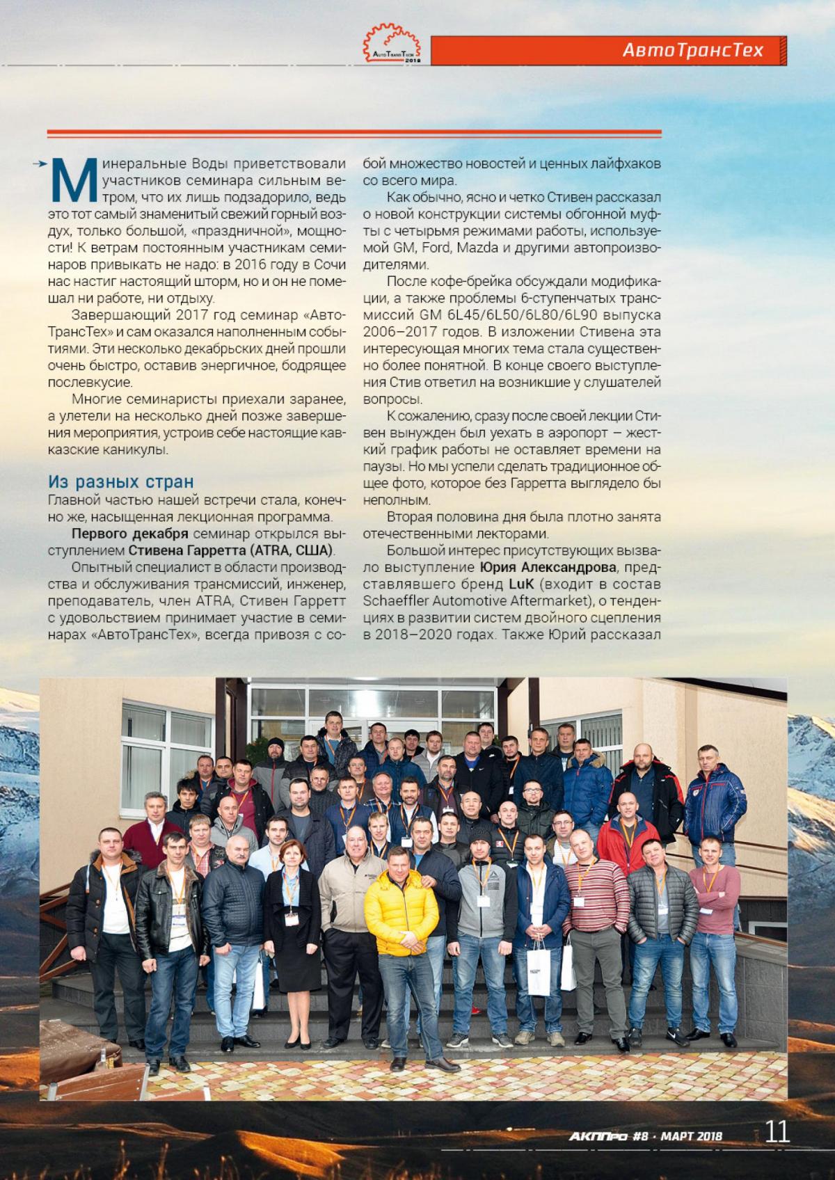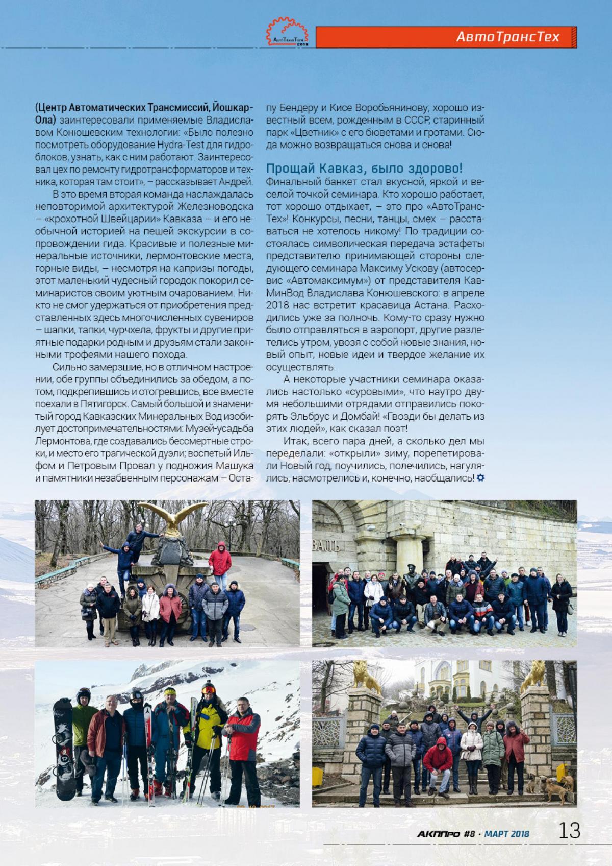 And this is exactly what we wish you too. Constant movement forward helps us meet challenges and rise to the occasion. Everything changes – both the equipment and those who operate it. That is why participation in “AutoTransTech” events is a must if you want to be armed with the most relevant and important information, to stay on top of the situation and keep the momentum going. The next seminar is scheduled to take place in April of this year in the capital of Kazakhstan - Astana. This modern city, which was created with the participation of the world’s leading architects, is a place that is definitely worth visiting. On the other hand, thanks to the seminar, you will not only obtain valuable information, but also have a wonderful time with your colleagues and friends.