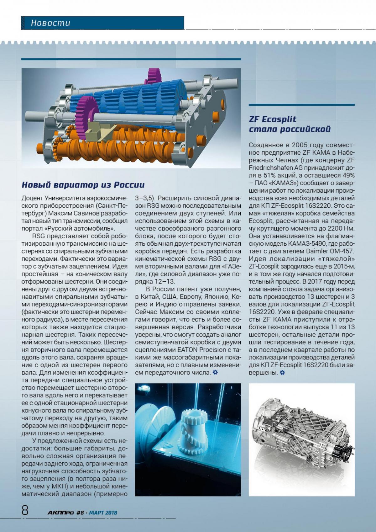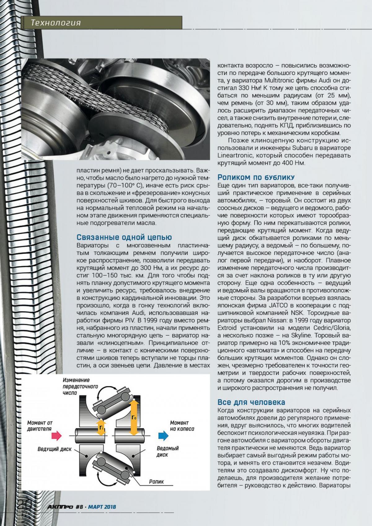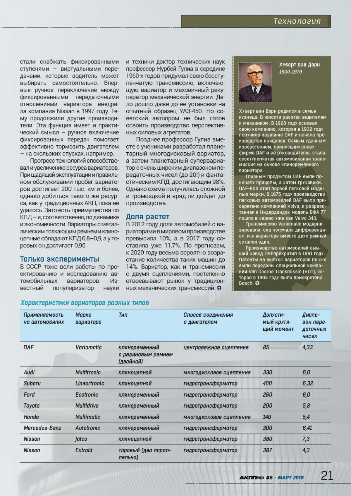 We could not ignore this epoch-making event, so CVTs became one of the cover themes of this “AKPPro” issue. You will learn more on the history of CVT creation have an opportunity to compare its various modern design and gain information on some promising items under development, including those in the Russian market. It turns out, that despite the considerable age this design has capacity for further development.