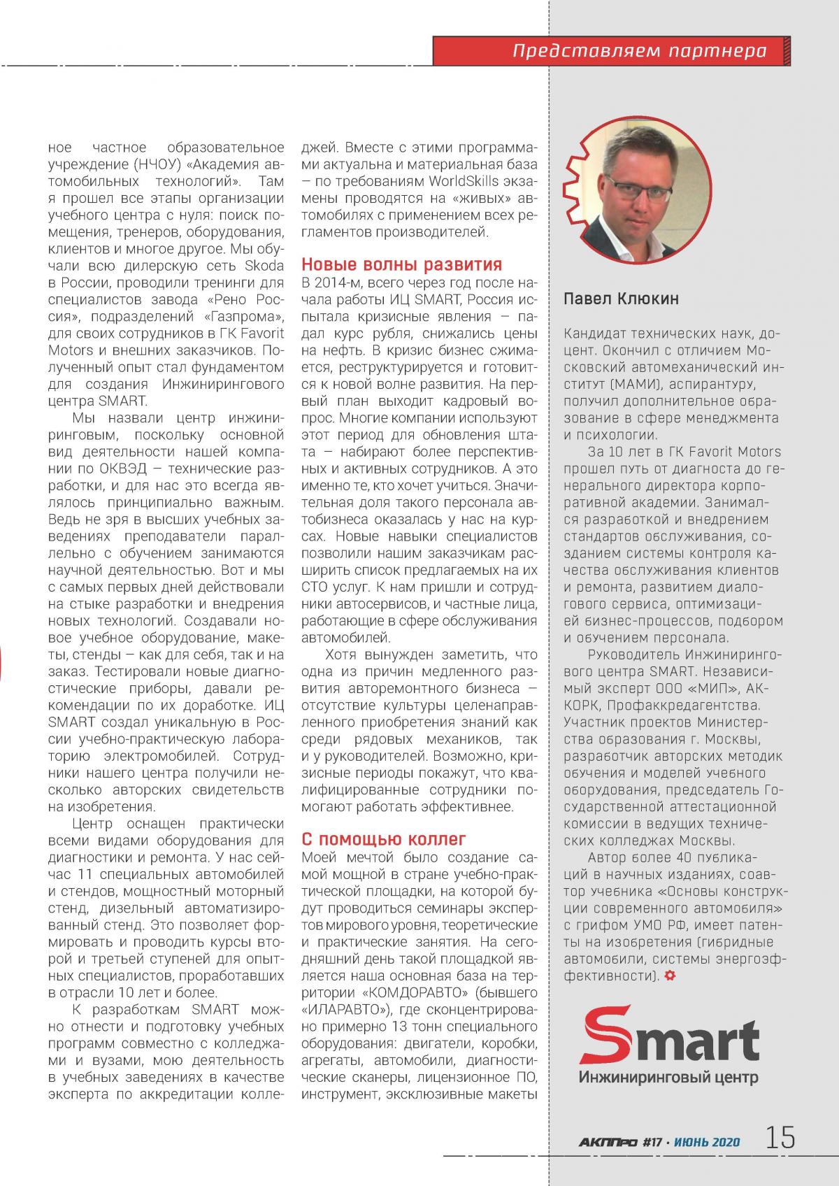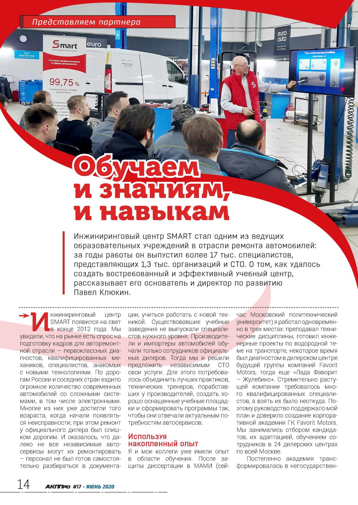 стр. 8 Техника бизнесаИнжиниринговый центр SMART стал одним из ведущих образовательных учреждений в отрасли ремонта автомобилей: за годы работы он выпустил более 17 тыс. специалистов, представляющих 1,3 тыс. организаций и СТО. О том, как удалось создать востребованный и эффективный учебный центр, рассказывает его основатель и директор по развитию Павел Клюкин.