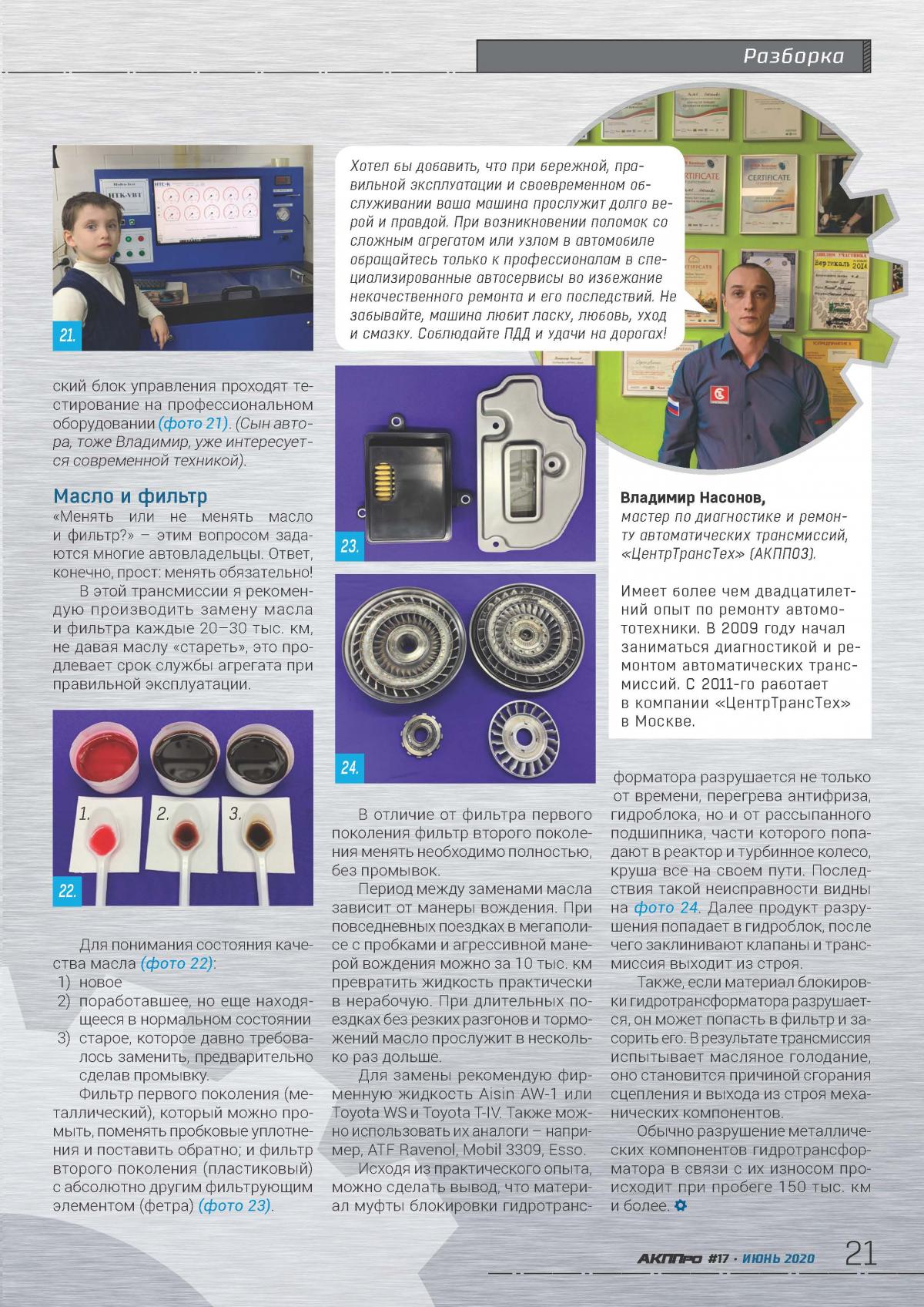 стр. 18 РазборкаОчередная статья из цикла о выявлении неисправностей автоматических трансмиссий. Первые четыре были опубликованы в предыдущих номерах журнала.