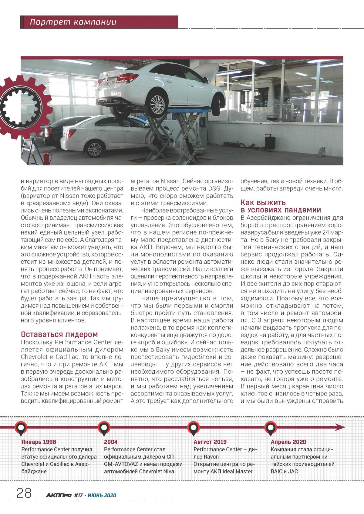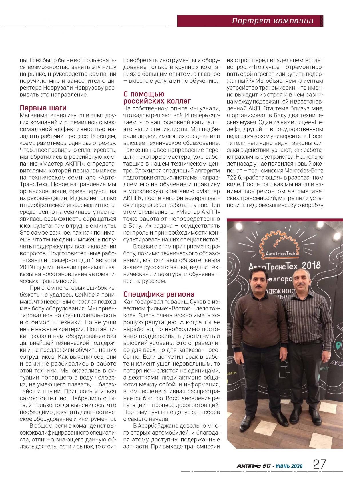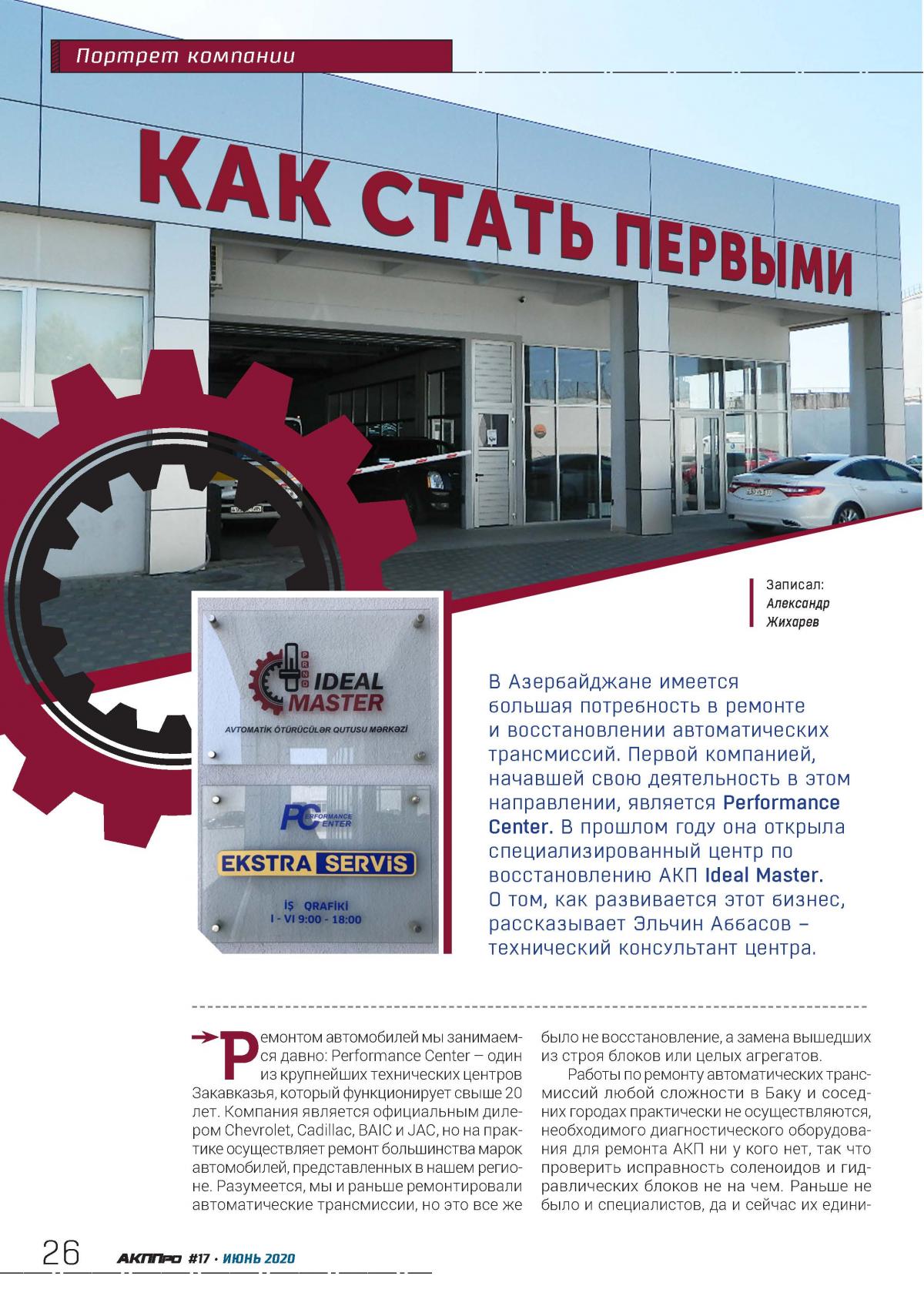 стр. 22 РазборкаВ Азербайджане имеется большая потребность в ремонте и восстановлении автоматических трансмиссий. Первой компанией, начавшей свою деятельность в этом направлении, является Performance Center. В прошлом году она открыла специализированный центр по восстановлению АКП Ideal Master. О том, как развивается этот бизнес, рассказывает Эльчин Аббасов – технический консультант центра.