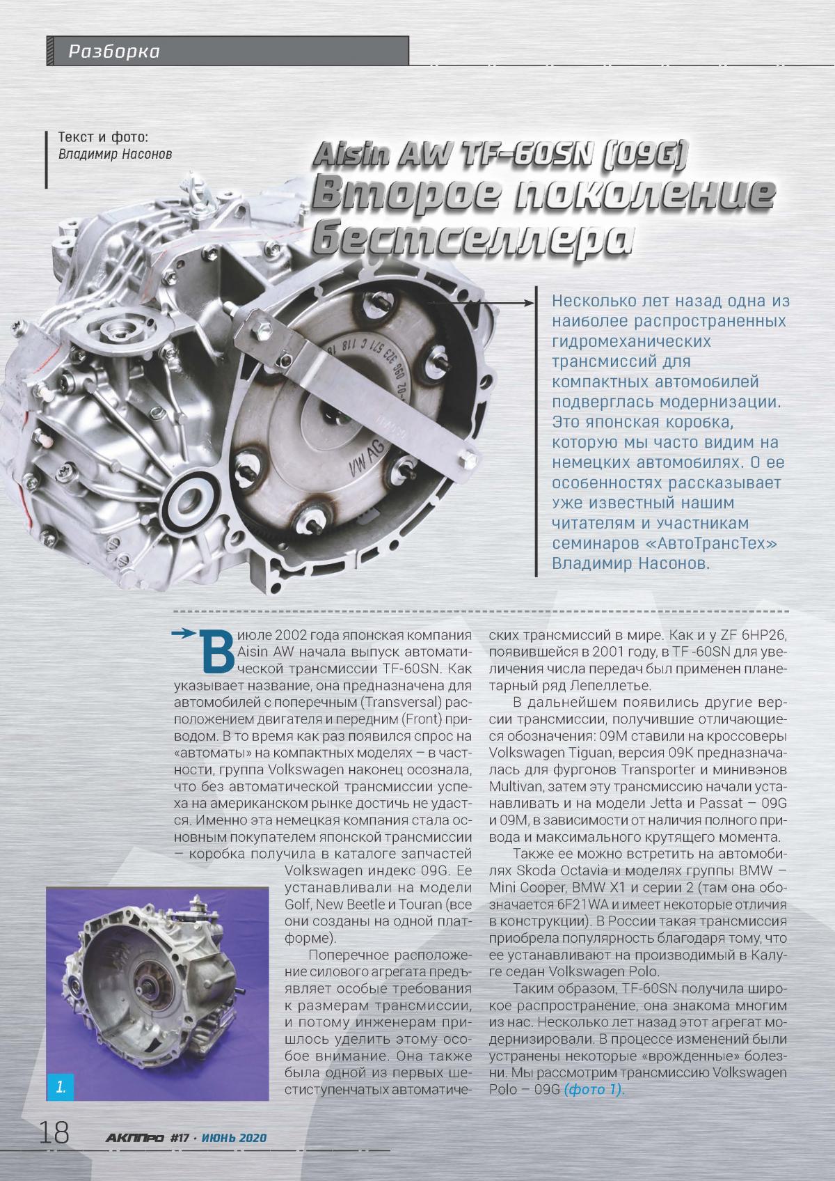 стр. 14 Представляем партнераНесколько лет назад одна из наиболее распространенных гидромеханических трансмиссий для компактных автомобилей подверглась модернизации. Это японская коробка, которую мы часто видим на немецких автомобилях. О ее особенностях рассказывает уже известный нашим читателям и участникам семинаров «АвтоТрансТех» Владимир Насовнов.