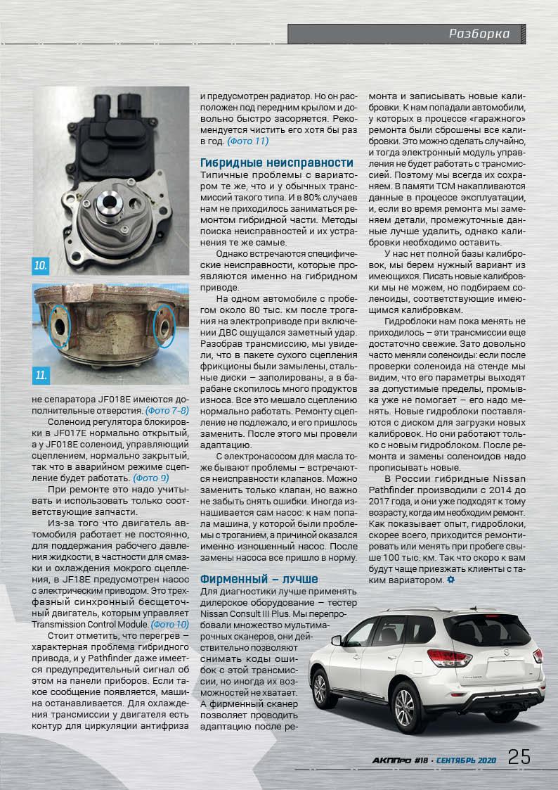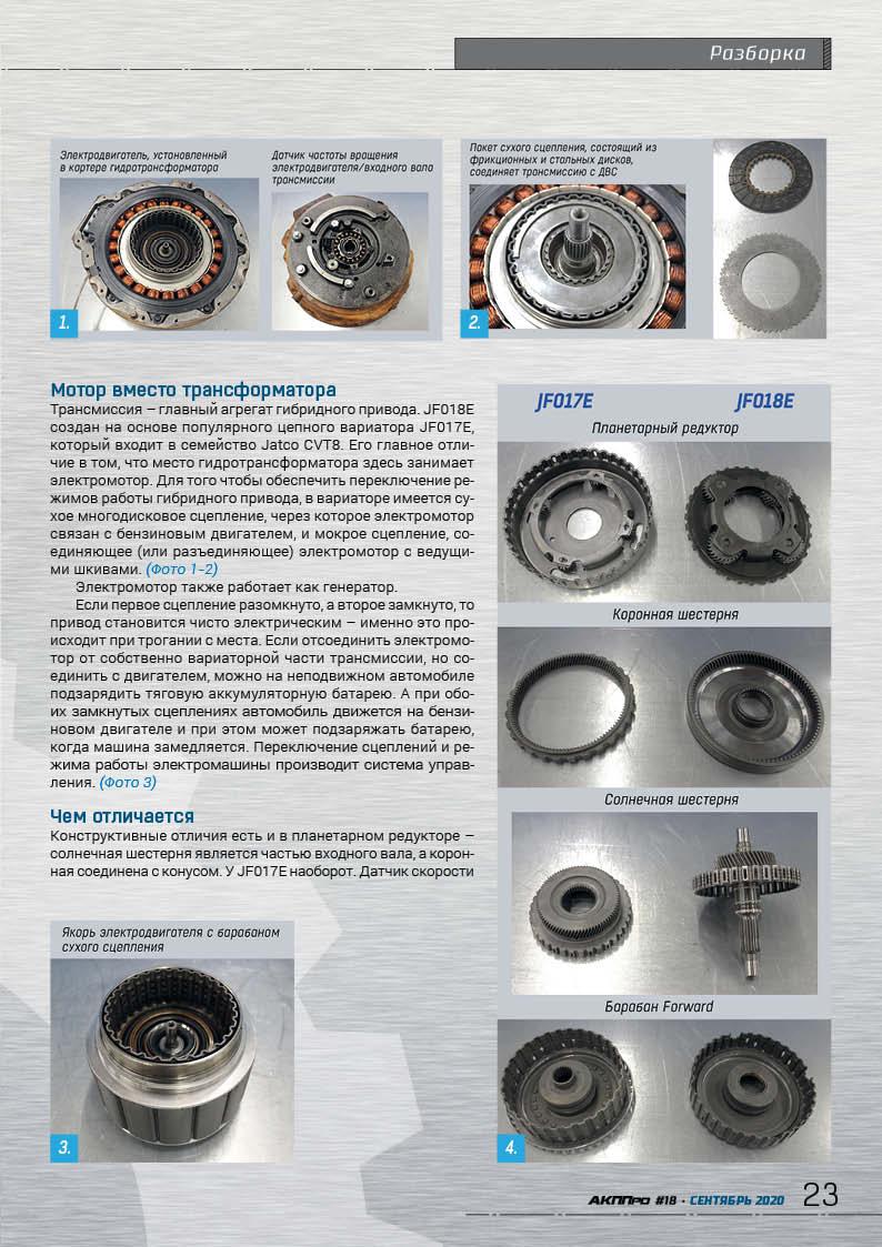 стр. 20 НавигаторТрансмиссия гибридных модификаций Nissan и Infifniti – вариатор Jatco JF018E создан на основе популярной модели JF017E, но имеет несколько существенных отличий в конструкции.