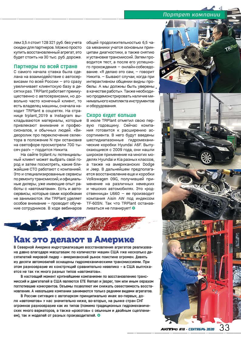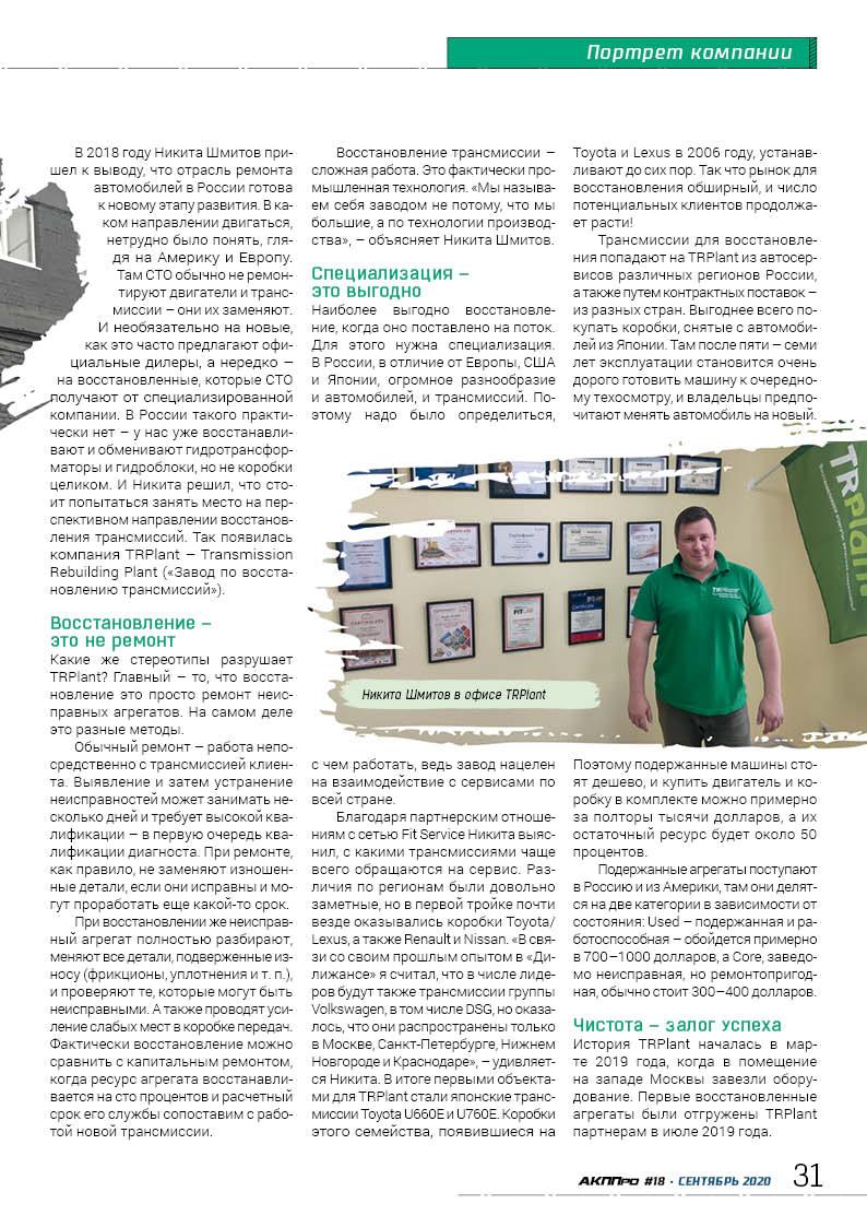 Наша отрасль развивается, несмотря на возникающие трудности. На страницах нового выпуска «АККПро» мы рассказываем о московском предприятии TRPlant, которое специализируется на восстановлении трансмиссий. Это одна из первых компаний такого типа в России.