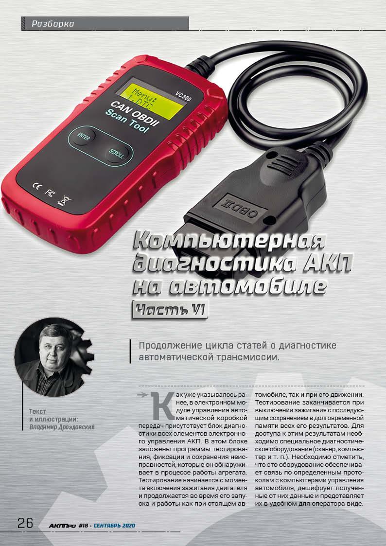 стр. 22 РазборкаШестая часть цикла статей Владимира Дроздовского о компьютерной диагностики трансмиссий на транспортном средстве.