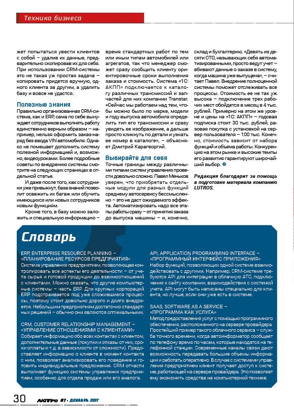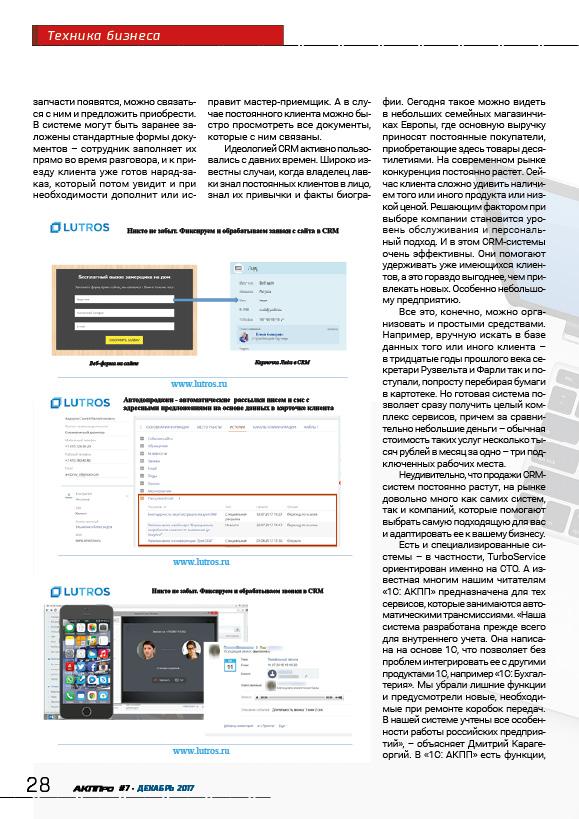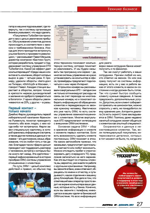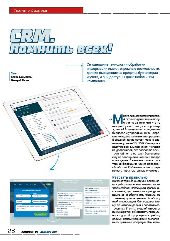Как удерживать постоянных клиентов и не упустить новых? В этом вам поможет система управления отношений с потребителями – CRM. Часто CRM становится часть системы управления предприятием. Что они умеют – читайте в рубрике «Техника бизнеса»! Стр. 26