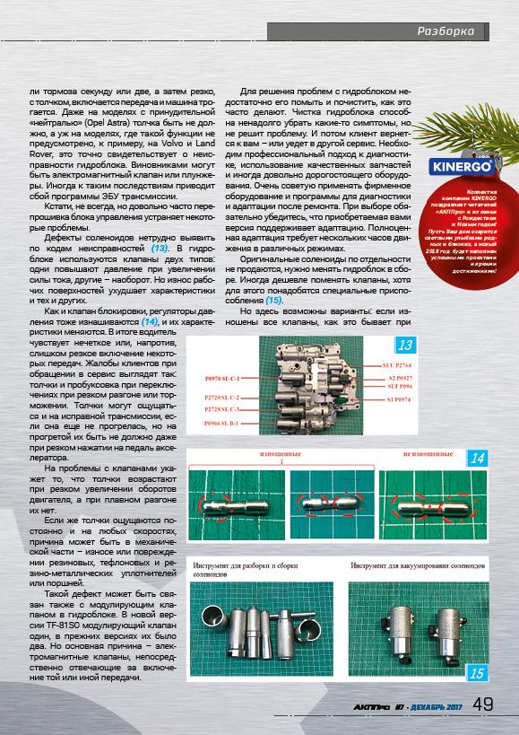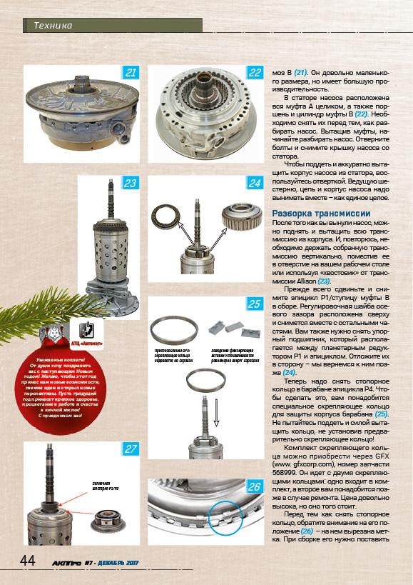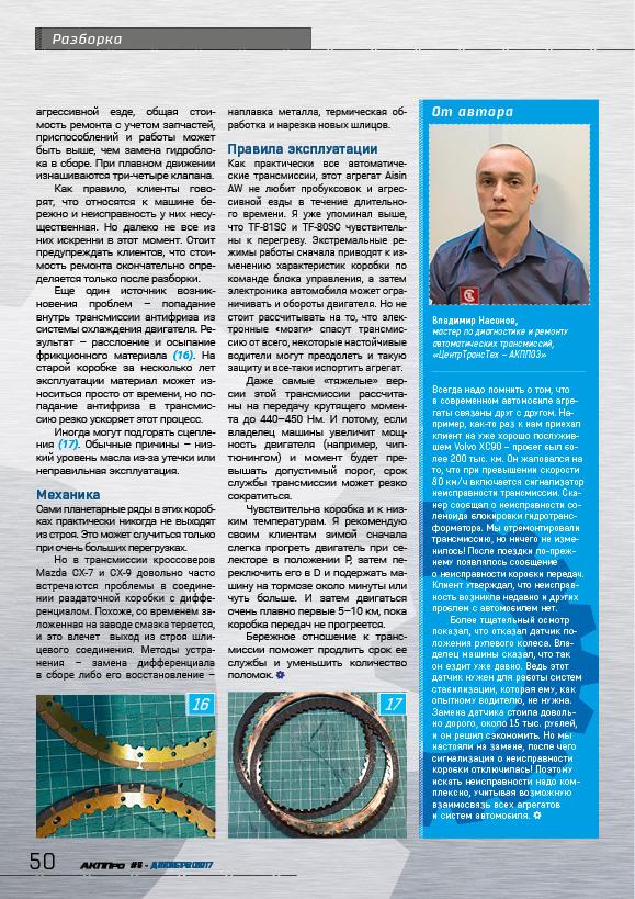 Владимир Насонов делится своим опытом диагностики и ремонта трансмиссий Aisin AW семейства TF-81SC/TF-80SC в нашей традиционной рубрике «Разборка». Стр. 48
